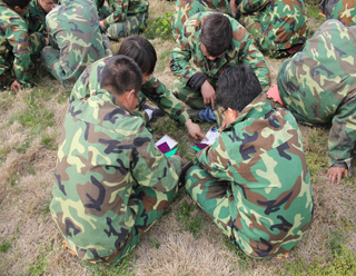 體驗(yàn)式戶外拓展訓(xùn)練是路翔企業(yè)新人入司后必須參加的培訓(xùn)項(xiàng)目之一。3月30日,路翔企業(yè)近三年新入司人員及公司總部相關(guān)人員一行35人,帶著激情和期待,在副總經(jīng)理?xiàng)钗谋虻膸ьI(lǐng)下,相聚如皋港藥用植物園基地,參加了為期一天團(tuán)隊(duì)拓展培訓(xùn)。 早晨7:00,我們的專車迎著朝陽(yáng)準(zhǔn)時(shí)從公司出發(fā)。由于此次訓(xùn)練營(yíng)的成員來(lái)自不同的分公司,有的平時(shí)工作接觸很少甚至沒(méi)有接觸,楊總首先向大家介紹了這次訓(xùn)練營(yíng)的人員情況,這次訓(xùn)練營(yíng)是公司組織的第5次拓展訓(xùn)練營(yíng),也是公司有史以來(lái)人員組成最年輕、學(xué)歷層次最高的一次,希望大家能夠全身心投入、挑戰(zhàn)自我、突破自我。接著,大家爭(zhēng)先恐后地依次介紹了自己的名字、部門、崗位、愛(ài)好、特長(zhǎng)等,氣氛非常熱烈,短短的40分鐘車程就在這樣輕松愉快的氛圍中不知不覺(jué)的過(guò)去了。 上午8:00,我們到達(dá)了這次訓(xùn)練的目的地——如皋港藥用植物園基地。剛放下行囊,大家就馬不停蹄地?fù)Q上統(tǒng)一的迷彩服,然后在教練的組織下開(kāi)始了“破冰”行動(dòng),有趣的熱身運(yùn)動(dòng)后,開(kāi)始分小組、起隊(duì)名、選隊(duì)長(zhǎng)、設(shè)計(jì)隊(duì)徽、隊(duì)呼、隊(duì)歌。不到10分種,當(dāng)“飛翔隊(duì)”、“拼搏隊(duì)”分別以昂揚(yáng)的斗志舉著隊(duì)旗、呼著隊(duì)呼、唱著隊(duì)歌、以獨(dú)特的造型展現(xiàn)著各自風(fēng)采的時(shí)候,每一個(gè)隊(duì)員的臉上都洋溢著不一樣的光彩,似乎對(duì)今天行程有了一種別樣的期待。 首先,進(jìn)行的是“信任背摔”,當(dāng)每一個(gè)伙伴站在1.8米的跳臺(tái)邊緣直直向后摔下的時(shí)候,當(dāng)每一個(gè)伙伴被同伴們穩(wěn)穩(wěn)地接住的時(shí)候,不時(shí)爆發(fā)出一陣陣的吹呼聲。正如伙伴們所說(shuō):“接人是一種責(zé)任,被人接是一種幸!,“我相信我的伙伴們、也相信我自己”。