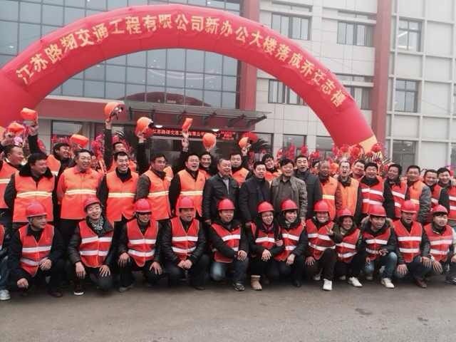 | 2013年12月8日清晨7時許,晨霧尚未散去,路翔企業(yè)位于如皋市磨頭鎮(zhèn)新聯(lián)村19組的辦公區(qū),已是音樂悠揚、花團錦簇、歡聲笑語、車來人往,一派喜慶的氣象,巨型的紅色氣拱門上“江蘇路翔交通工程有限公司新辦公樓落成喬遷志禧”的條幅,向所有人昭示著今天活動的主題。