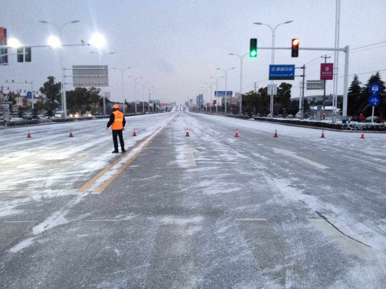今日凌晨四點,當人們還沉浸在香甜的睡夢中,路翔企業(yè)的養(yǎng)護工人已經(jīng)走上街頭開始除雪融冰。城市道路、國省干線、縣鄉(xiāng)道路,一個個“橘紅色”的身影正在緊張的忙碌著,他們組成一個個清掃組對重要路段的積雪進行重點突擊清掃,累計出動122名養(yǎng)護工人,52輛農(nóng)用車,6臺掃雪器,5臺裝載機,拋灑防滑料600噸,養(yǎng)護大中型橋梁65座,養(yǎng)護路面總里程達600多公里,路翔企業(yè)奮斗在最前線,全力以赴保障居民安全出行! [總經(jīng)辦 薛伯嬌] |