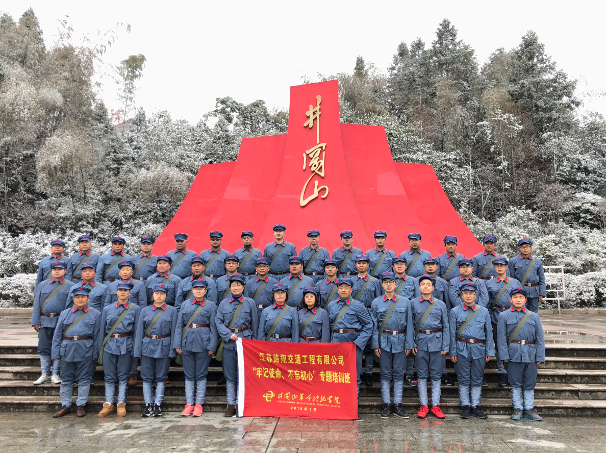 2018年1月26日清晨7時(shí)許,天空正飄灑著在一場(chǎng)罕見的鵝毛大雪,地面上也已鋪滿積雪但尚未結(jié)冰,馬路上只有寥寥的幾輛車在緩慢的行駛。而在江蘇路翔交通工程有限公司的大門前,卻是另外一番景象,不斷有從不同方向駛來的車輛進(jìn)入公司,從車上陸續(xù)下來的人都不約而同地拖著一個(gè)行李箱,原來是公司即將奔赴井岡山開啟“牢記使命、不忘初心”紅色之旅的伙伴們。7時(shí)40分,旅游大巴載著全部41名伙伴正式出發(fā),在風(fēng)雪中開啟了這趟不平凡的培訓(xùn)旅程。