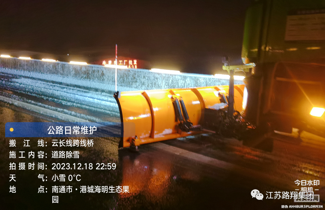 12月18日我市迎來大范圍降雪,同時(shí)如皋氣象臺(tái)發(fā)布暴雪藍(lán)色預(yù)警信號(hào)、道路結(jié)冰黃色預(yù)警信號(hào)。路翔公司及時(shí)啟動(dòng)雨雪冰凍等惡劣天氣應(yīng)急預(yù)案,迅速調(diào)配機(jī)械設(shè)備、人員開展融雪、清雪、除冰工作。重點(diǎn)突出國(guó)省干線、橋梁除雪保暢工作,實(shí)施融雪劑重點(diǎn)布撒作業(yè),防止路面結(jié)冰。